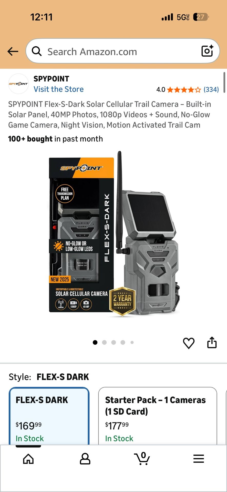 SPYPOINT Flex-S-Dark Solar Cellular Trail Camera – Built-in Solar Panel, 40MP Photos, 1080p Videos + Sound, No-Glow Game Camera, Night Vision, Motion