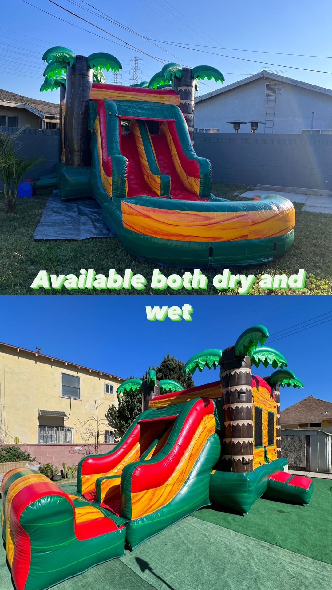 Dry slide only! Can be used with a pool as well. 2 in 1 jumper combo has basketball hoop inside as well. 22ft long 13ft wide Tables and chairs also available. Round tables Rectangle tables Mesas y sillas Jumper Bricolins Water slides Parties events .