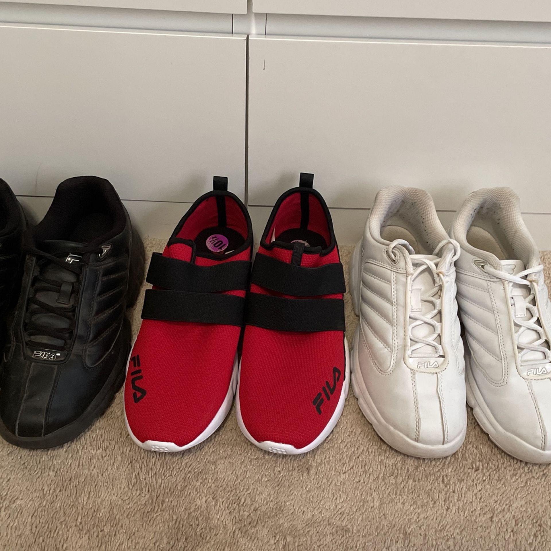 Fila Pack! (white Fila Low top), (Black Fila Low top) & (Red And Black Running Shoe)