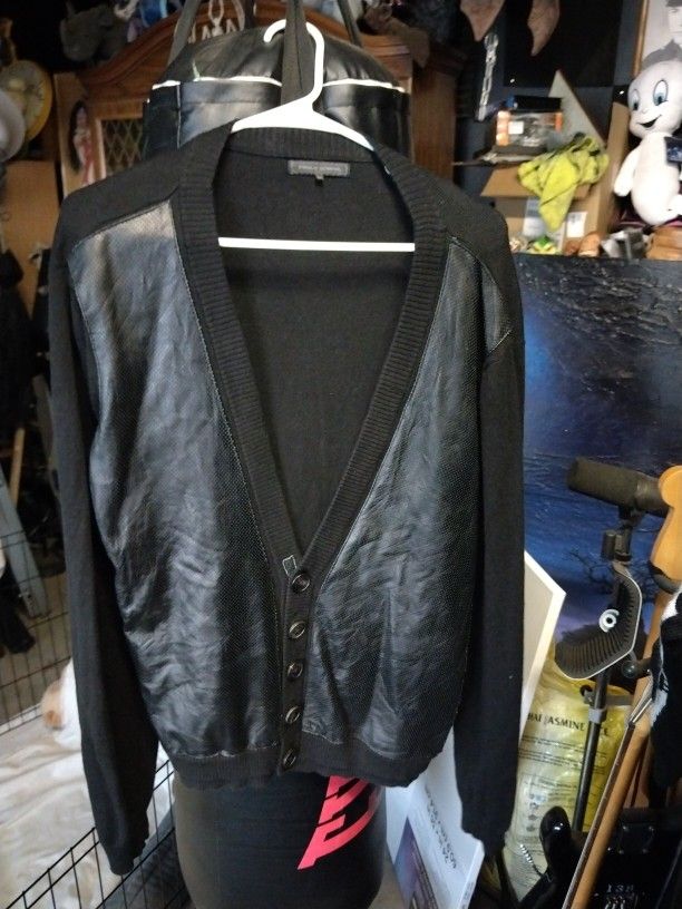 PUBLIC SCHOOL NYC Black Leather Trim Cashmere/Cotton Cardigan Sweater Medium