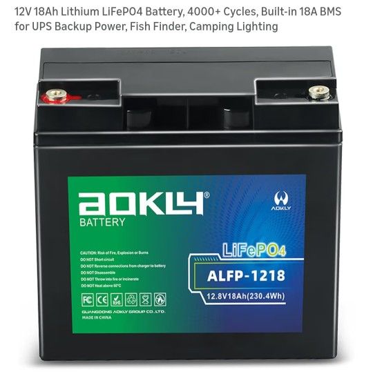 Brand AOKLY Vehicle Service Type Golf Cart, Lawn Mower, Scooter Size12.8V 18Ah Voltage12.8 Volts Battery Cell CompositionLithium Ion Item Weight4.9 Pounds