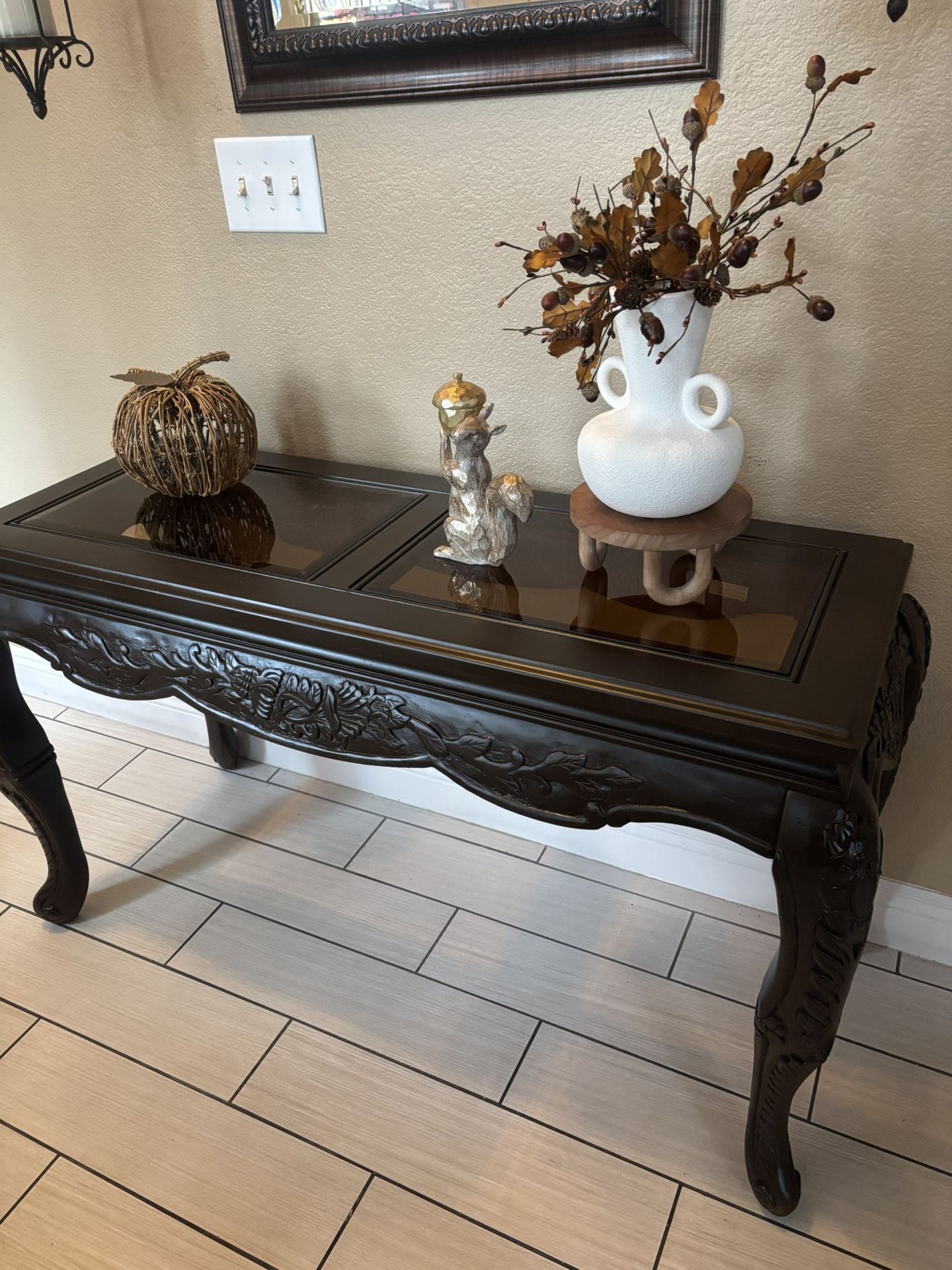 Entry table dark brown really good condition 48 inch w x 30 inch h x 18 inch l