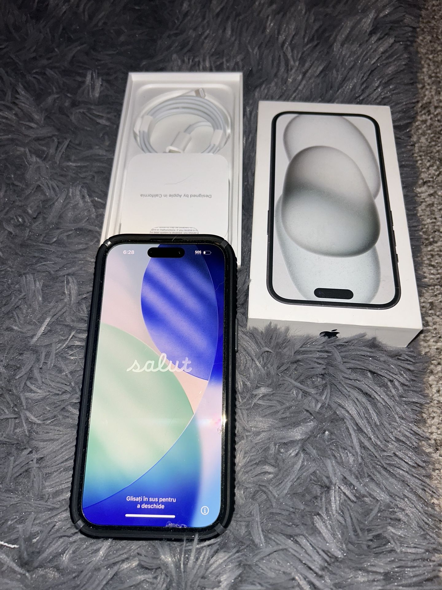 iPhone 15 with box , charger cord, & hard case cover. Cleared and ready for use..