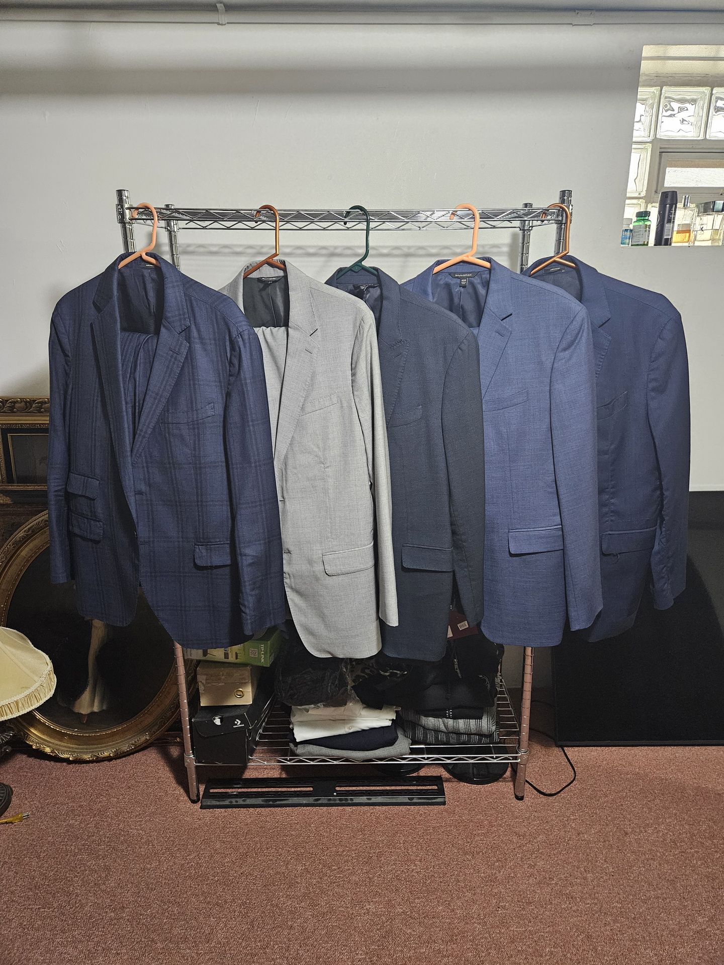 5 used good condition expensive quality super wool suits. Size 42 regular jacket and size 36 pants. 2 are massimo dutti brand and 2 are banana Republic made with Italian wool. These were selling for $800 and $1000 each.. take all 5 for $200 that's only $40 each when taking all. Great price. Cash..must pickup sheepshead bay brooklyn