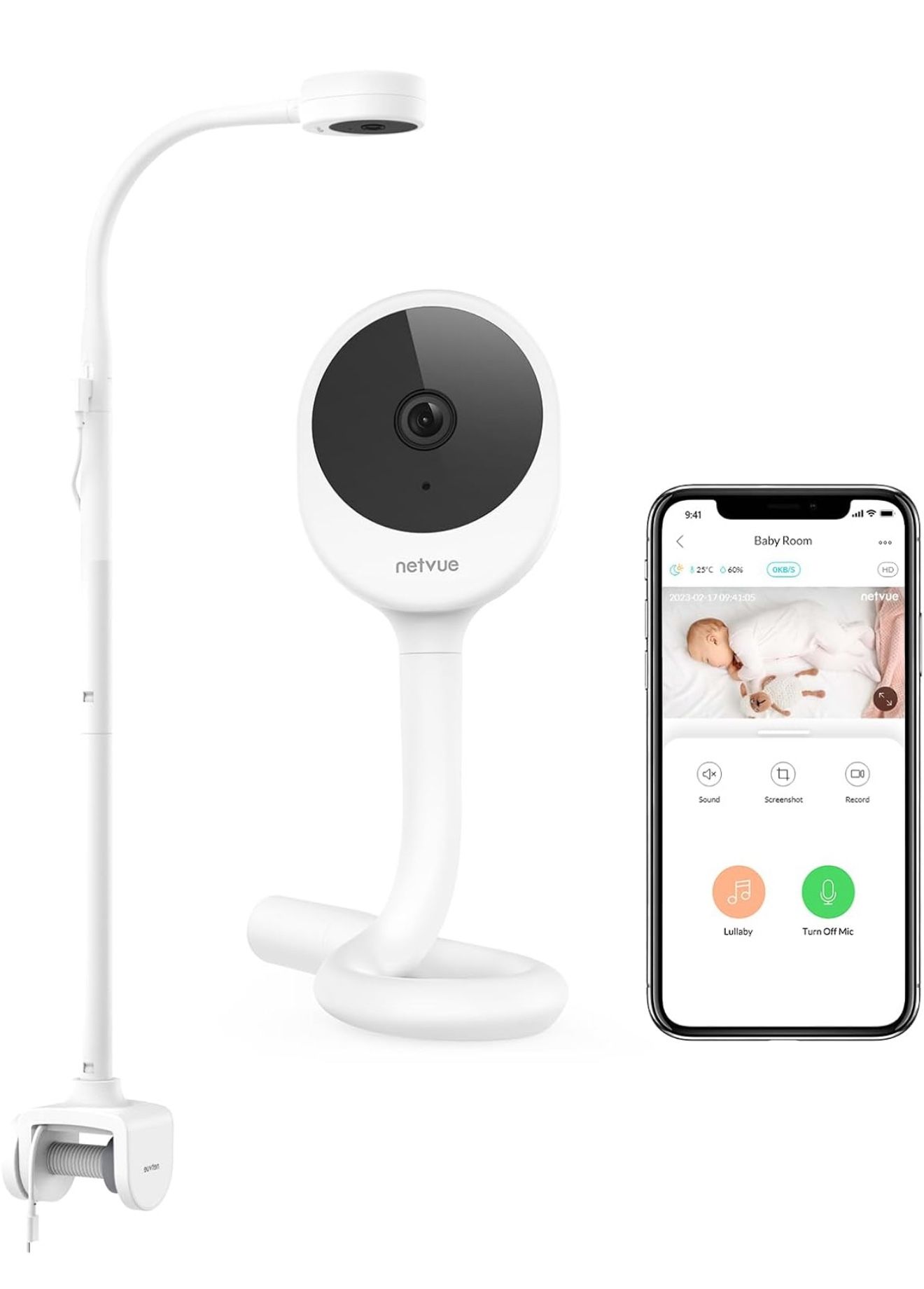 NETVUE Peekababy Baby Camera Monitor, Wireless Baby Monitor with Camera & Audio, 4-in-1 Crib Mount