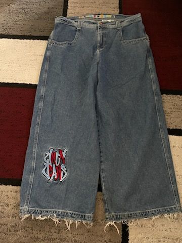 JNCO Blue Rolling Jeans- graffiti embroidered Size 40x30 13 inch leg opening Pick up on Hollywood and Lake Mead area