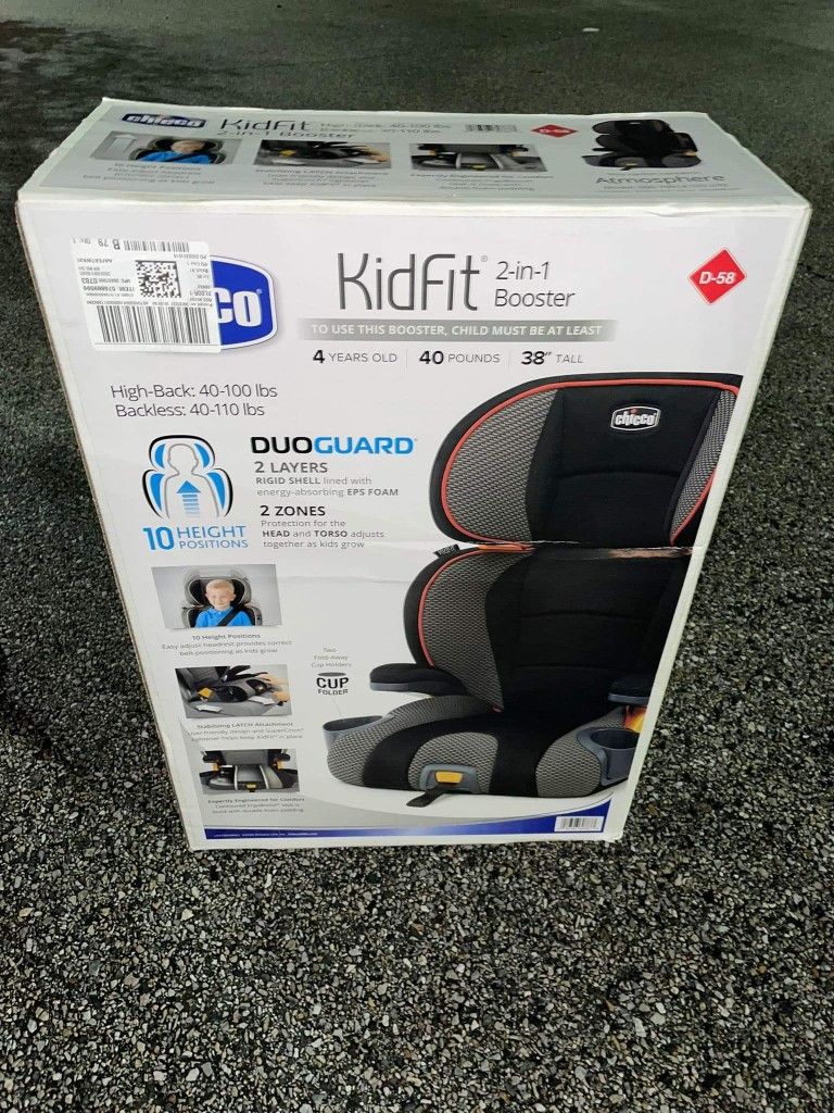 Chicco KidFit 2-in-1 Booster Car Seat For big kids 4y+ from 40-100 lbs in High-Back Mode, 40-110 lbs in Backless Mode, and 38-57" - DuoGuard® head and torso protection with 10 positions - Premium LATCH connectors with SuperCinch one-pull tightener - ErgoBoost® contoured seat with double foam padding - Removable, machine-washable seat pad, cushions, and armrest covers - 2 dishwasher-safe CupFolders are easy to remove and hide away to save space - Side wings lined with EPS energy-absorbing foam - 2-position backrest adjusts to mimic vehicle seat position - Easy-to-use vehicle belt guides - Backrest is removable to create a backless booster for older children