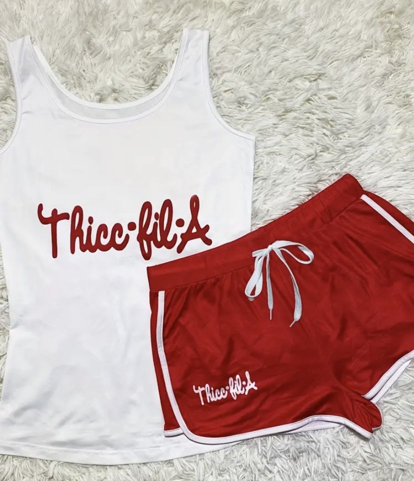 Brand New Womens Juniors JRS 2pc Sporty Thicc-Fil-A Tank Top & Shorts Outfit Set. Size XXL 14