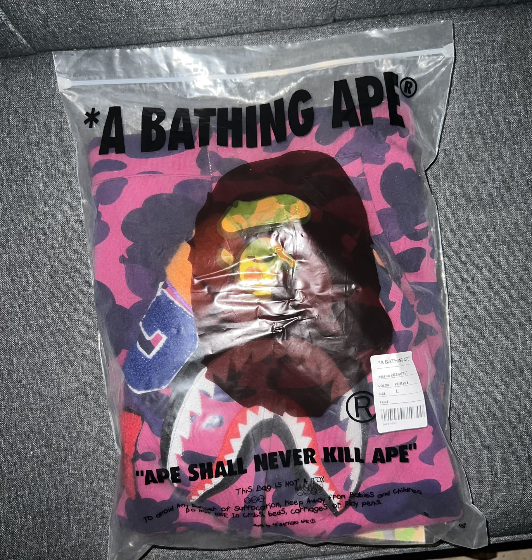 Purple /pink bape hoodie Large Open never worn Trades cool