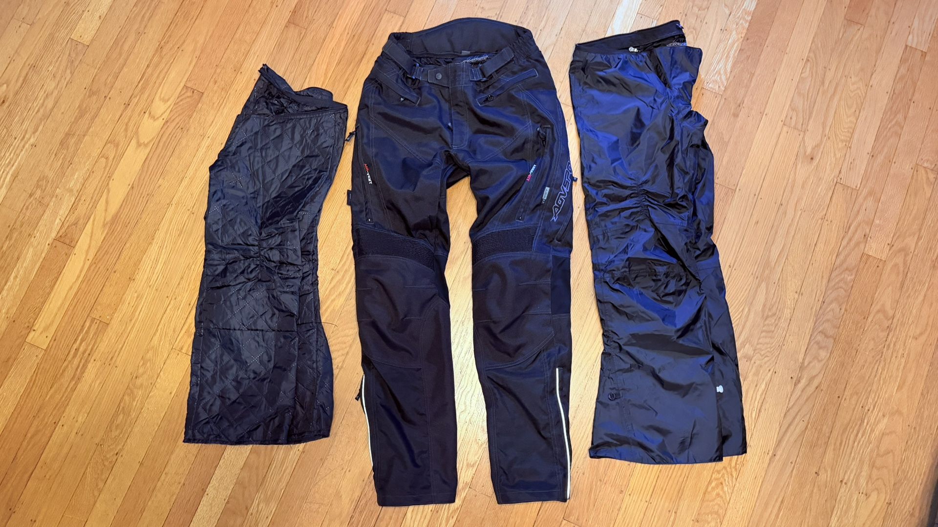 * I purchased these many seasons ago but haven’t wore them much, maybe 3 or 4 times, due to losing weight. Well constructed pants. Will fit a 31”-32”waist. They look almost new and have no wear spots. I will take best offer! * Size Medium Designed for any climate. * Constructed of 600 denier polyester strengthened woven textile for durability and comfort. * Knee area and the inside of the lower leg area are reinforced with highly abrasion resistant ballistic nylon. * Removable waterproof and breathable Reissa liner zips in over a permanent mesh lining. * Removable thermal insulating quilted liner zips in over a Reissa waterproof liner. * Pant may be worn with no lining for warmer days or with the waterproof liner for warm and wet days or with the waterproof liner and quilted liner for truly nasty days. * Zip open air vents are positioned on the front and rear of each leg. * Accordion fabric-Spandex textile panels are used in multiple locations for the finest non-binding fit possible. * CE approved knee pads. EN 1621-level 1. * 10mm thick memory foam hips and lower back pad. * Multiple stitched main seam construction for maximum tear resistance. * World famous YKK zippers. * Zip open lower legs. * Extra long zipper pulls are used on all zippers. * Velcro secured flap over the fly. * Two front hand warmer pockets. * Adjustable Velcro waist tabs. * Connection zipper for jacket attachment.