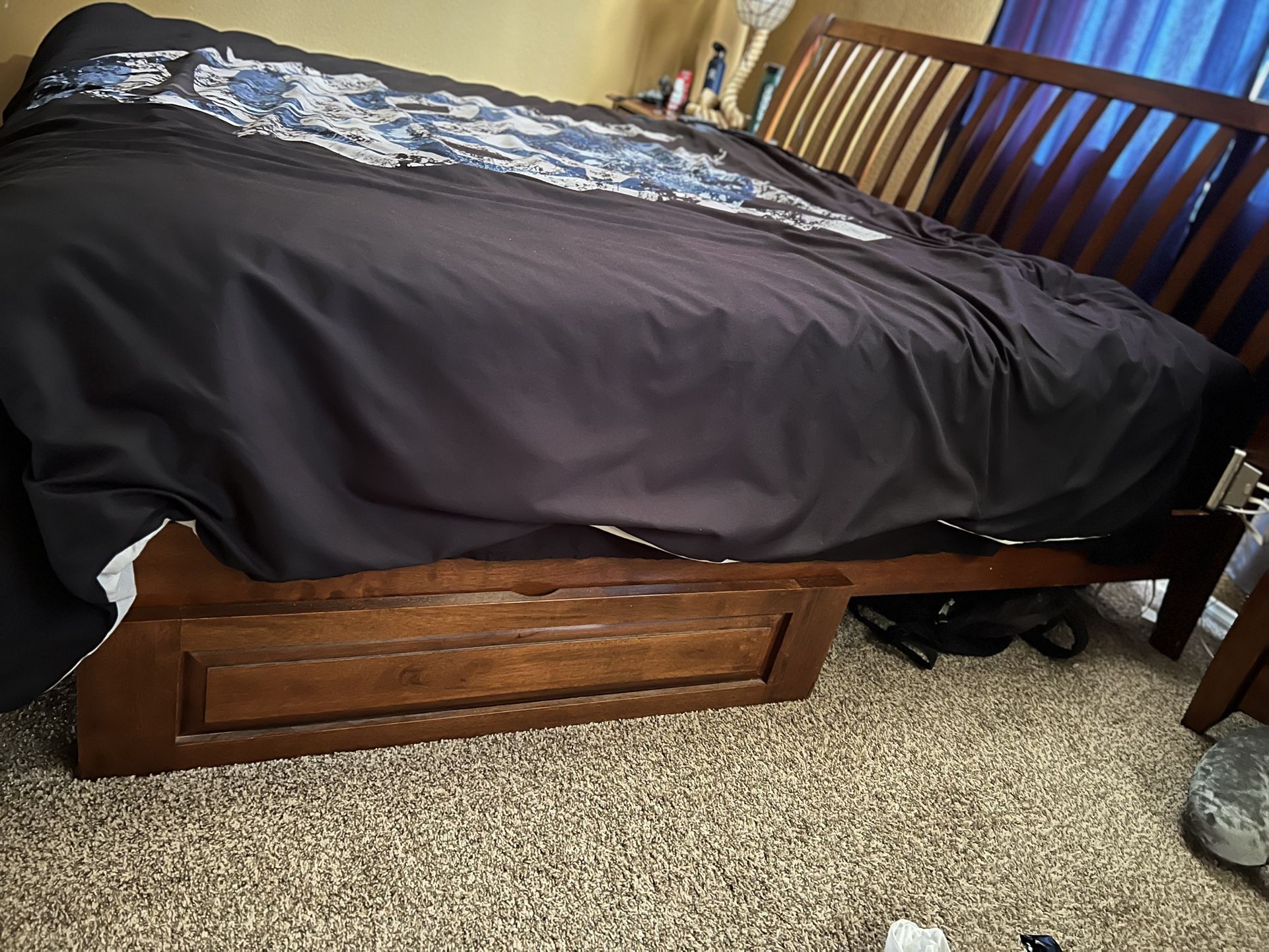 Pieces included; King sz bed frame, nightstand, little side table 5 drawer dresser, 2 big underneath drawers, all this bn pieces bought it as a set in Ashley furniture few years ago, came from a non smoking, pet free home, very good clean kept condition. Desk and chair also included. I’m located at west Lancaster