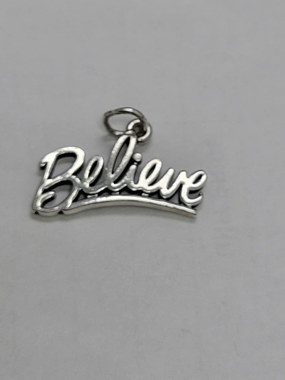 Retired James Avery Sterling Silver “Believe” Charm - stamps worn
