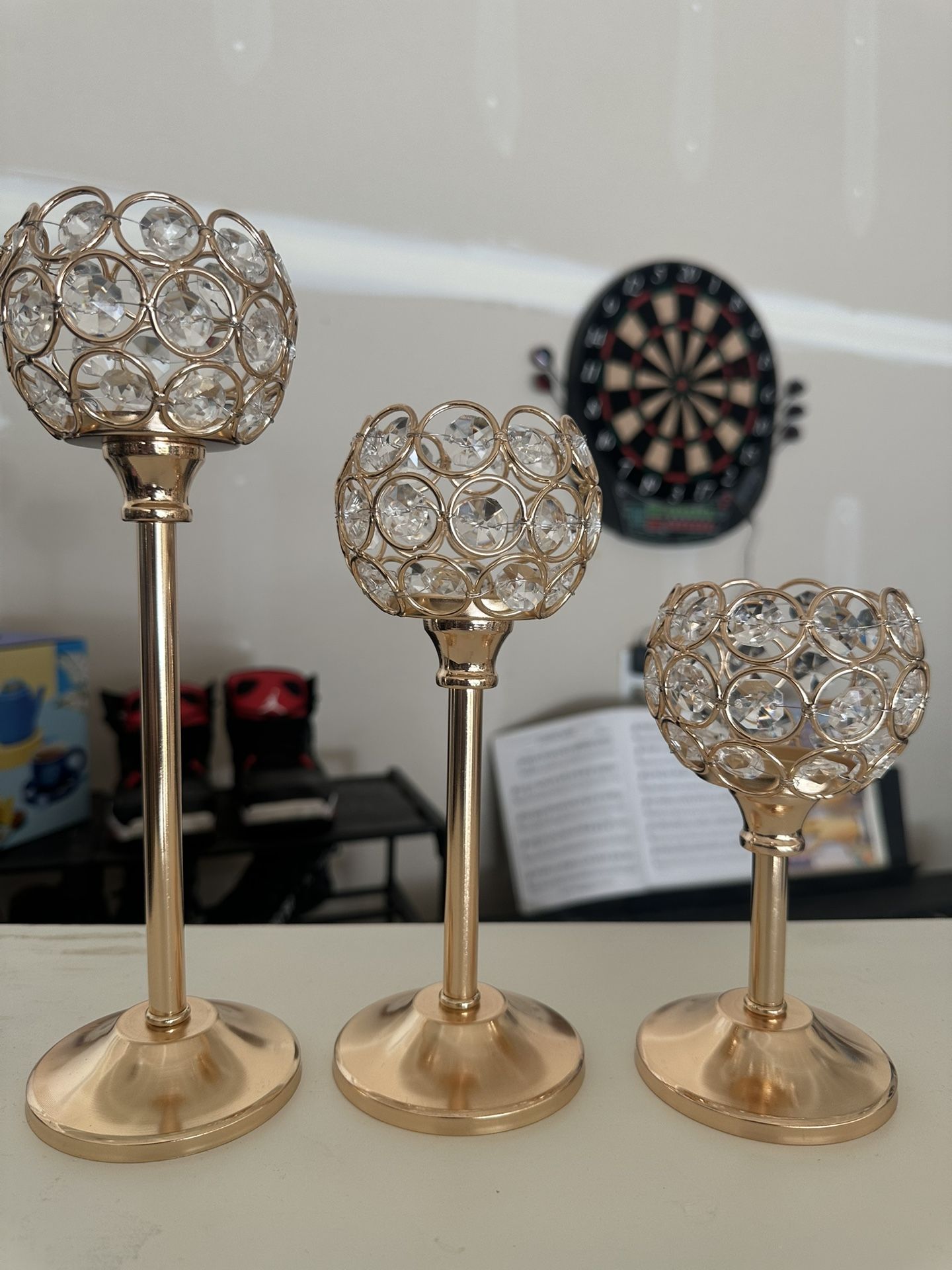 Beautiful 3 piece crystal and gold candle holders. Like new condition. Only used once. Asking $25 for set. Pick up only