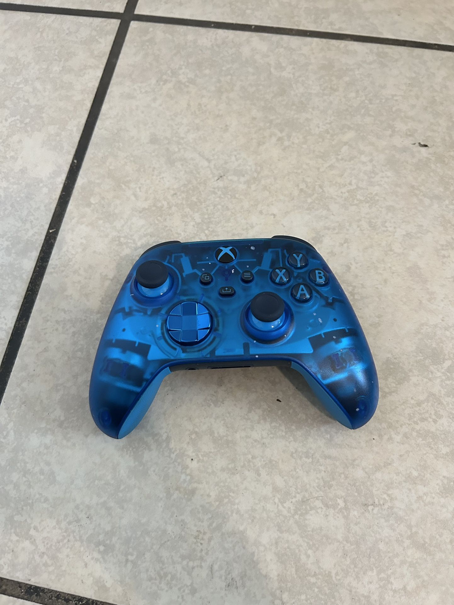 Official Xbox wireless controller in great working condition. Fully tested — all buttons, sticks, and triggers work perfectly. Includes: • Xbox wireless controller (blue camo design) • Rechargeable battery pack Compatible with Xbox One, Xbox Series X|S, PC, and mobile devices via Bluetooth. Clean, responsive, and ready to use — no need to buy batteries. Local pickup today available. Cash payment only