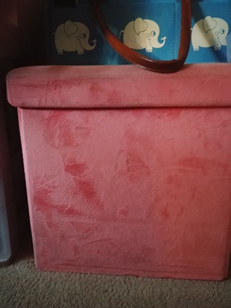 Pink ottoman. Folds flat. Can be used as a seat cushion