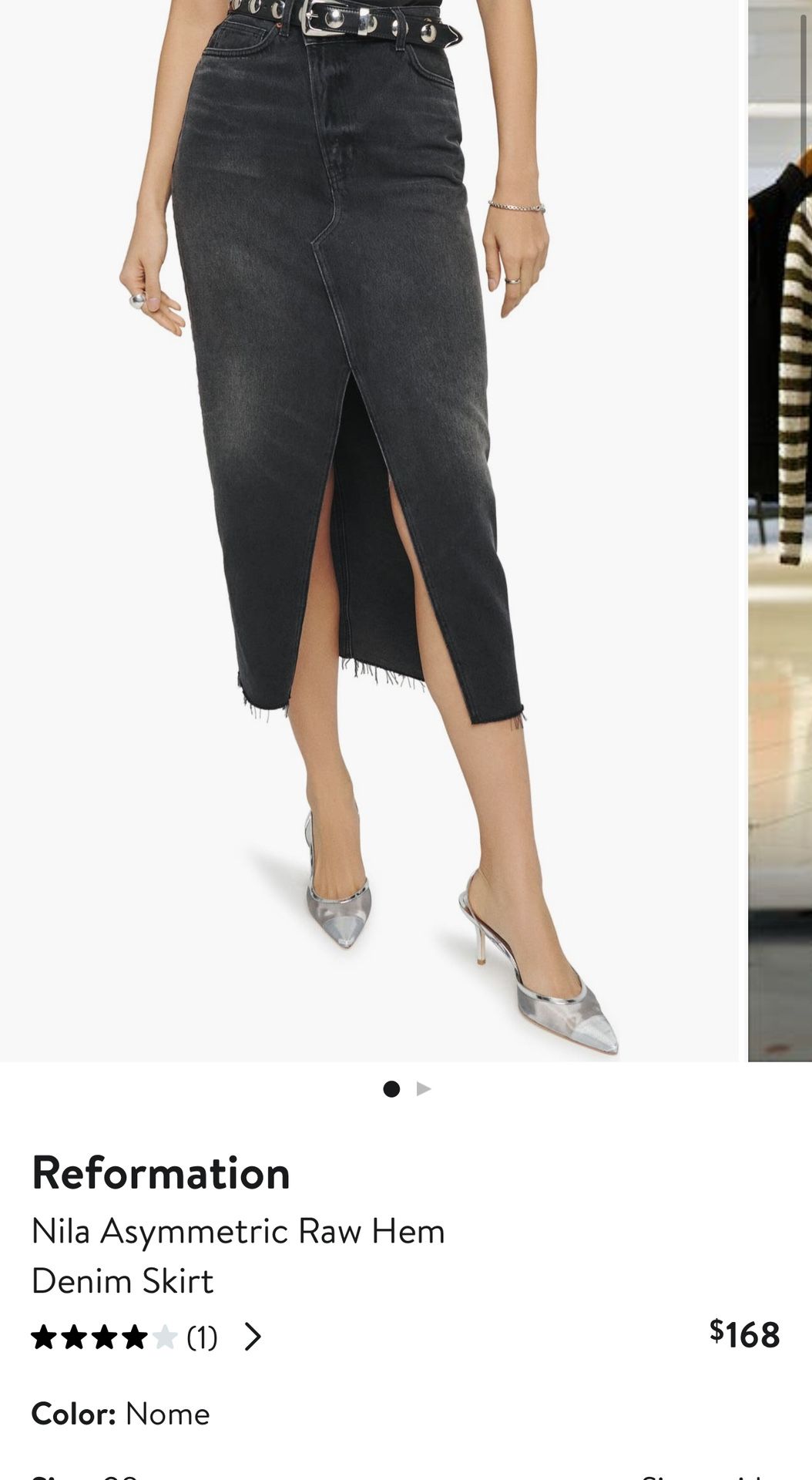 Reformation Nila Asymmetric Raw Hem Denim Skirt (NEW)