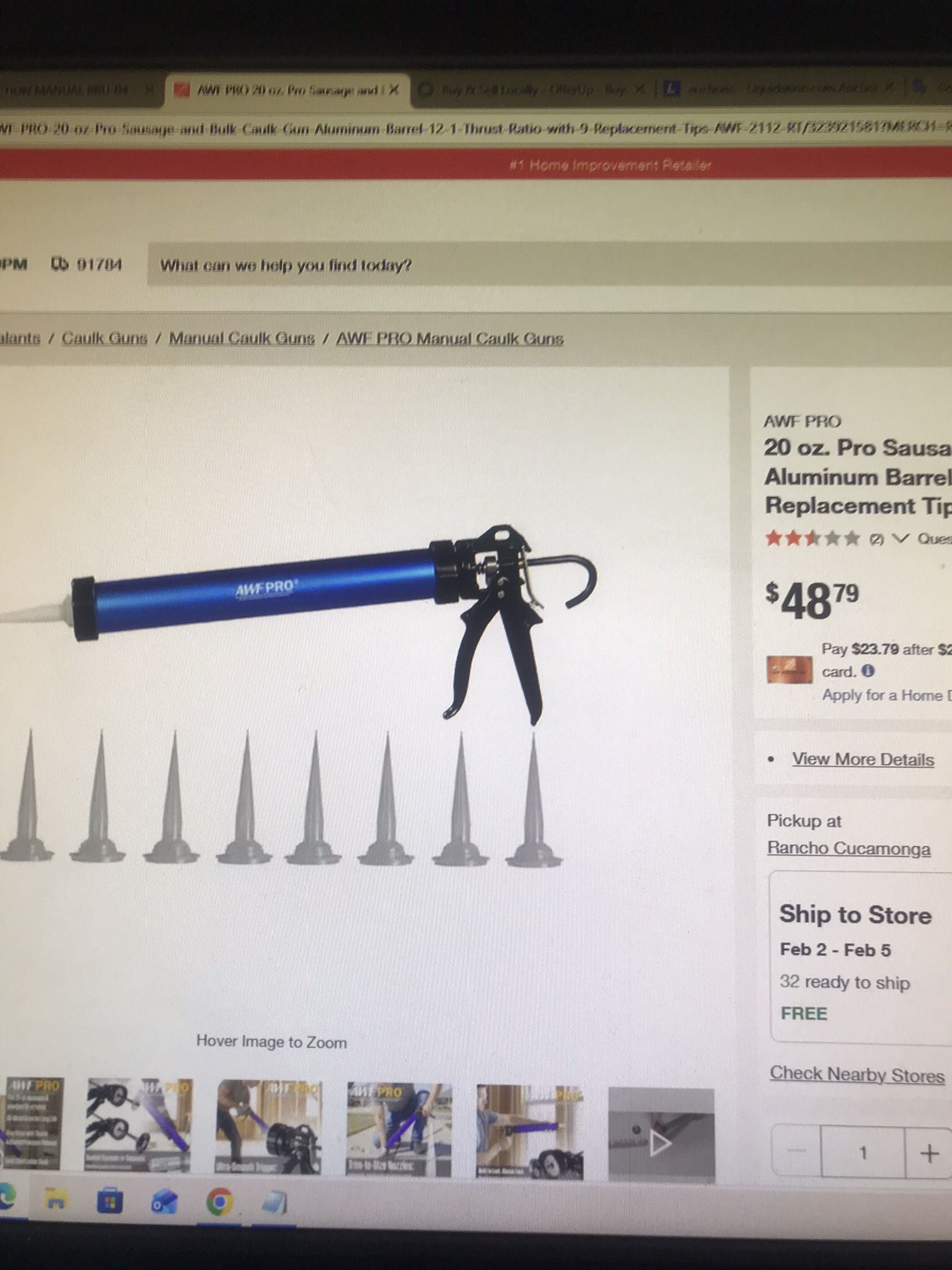 Tool$48plus four 20oz.sausage tubes of liquid flashing for windows and doors