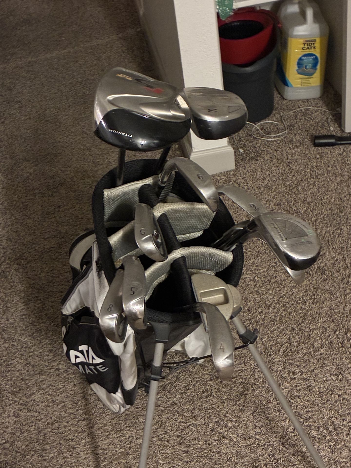 12 club set great for beginners, will get you all around a course no problem. Also comes with balls. Bag has ripped handle but stands well. $200 obo