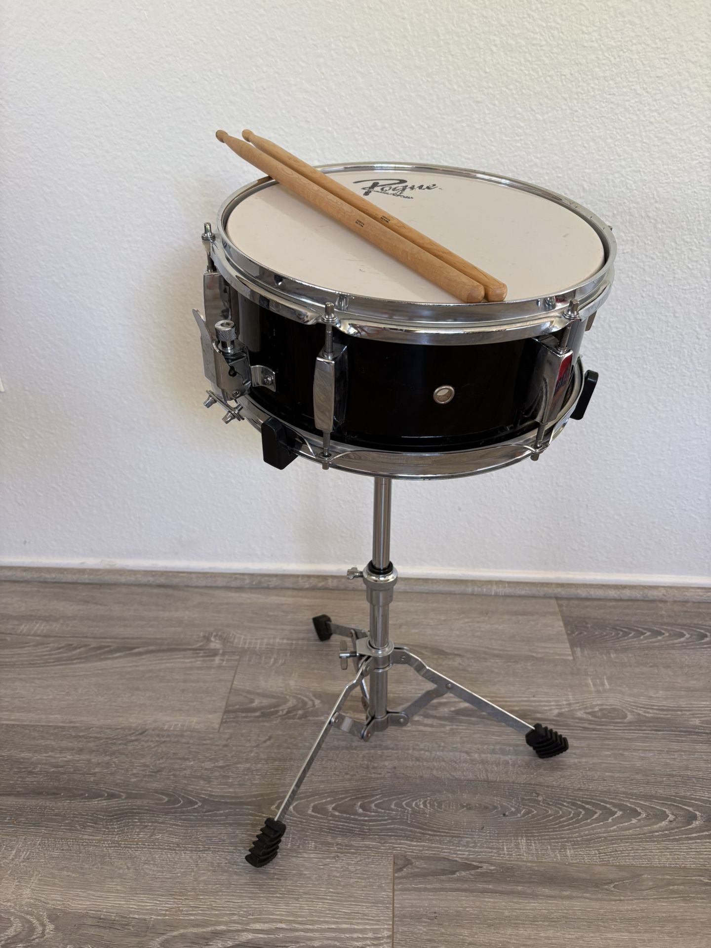 Great condition 12” snare drum and small/medium stand. Excellent to add to a small kit for tight spaces, or on it’s own for a beginner to learn rudiments $30 Firm