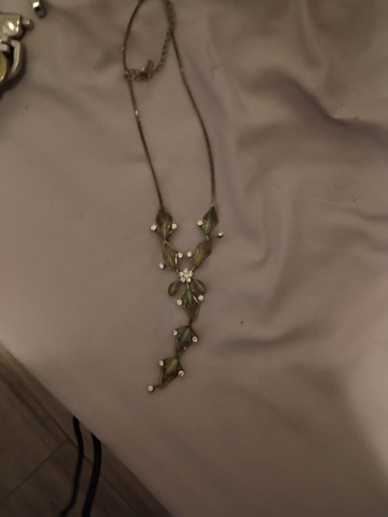 Hand made intricate detail green cubic zirconia never worn earrings with necklace
