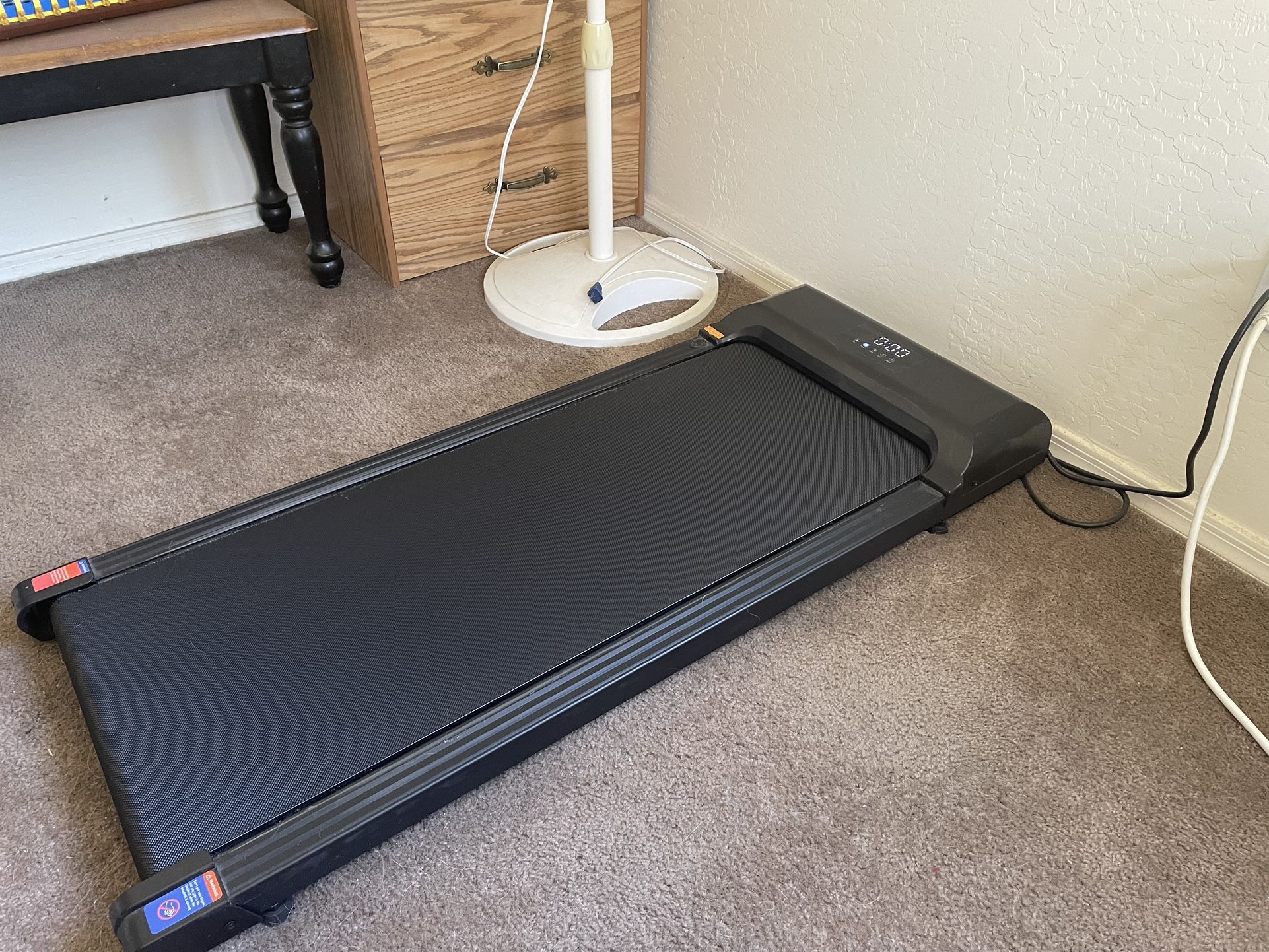 Walking pad in perfect working condition. I got it thinking I would use it regularly. I don’t. I prefer walking outside. Simple on/off and speed controller.