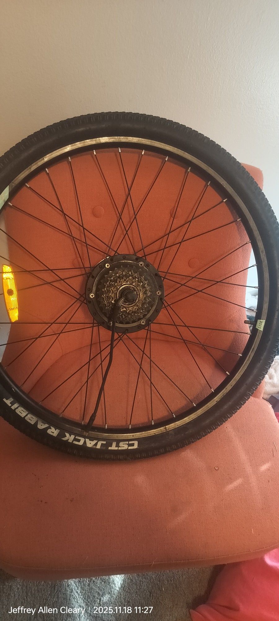 I got a ebike tire with the motor built into the rim. It works with just about any e-bike that takes this size wheel