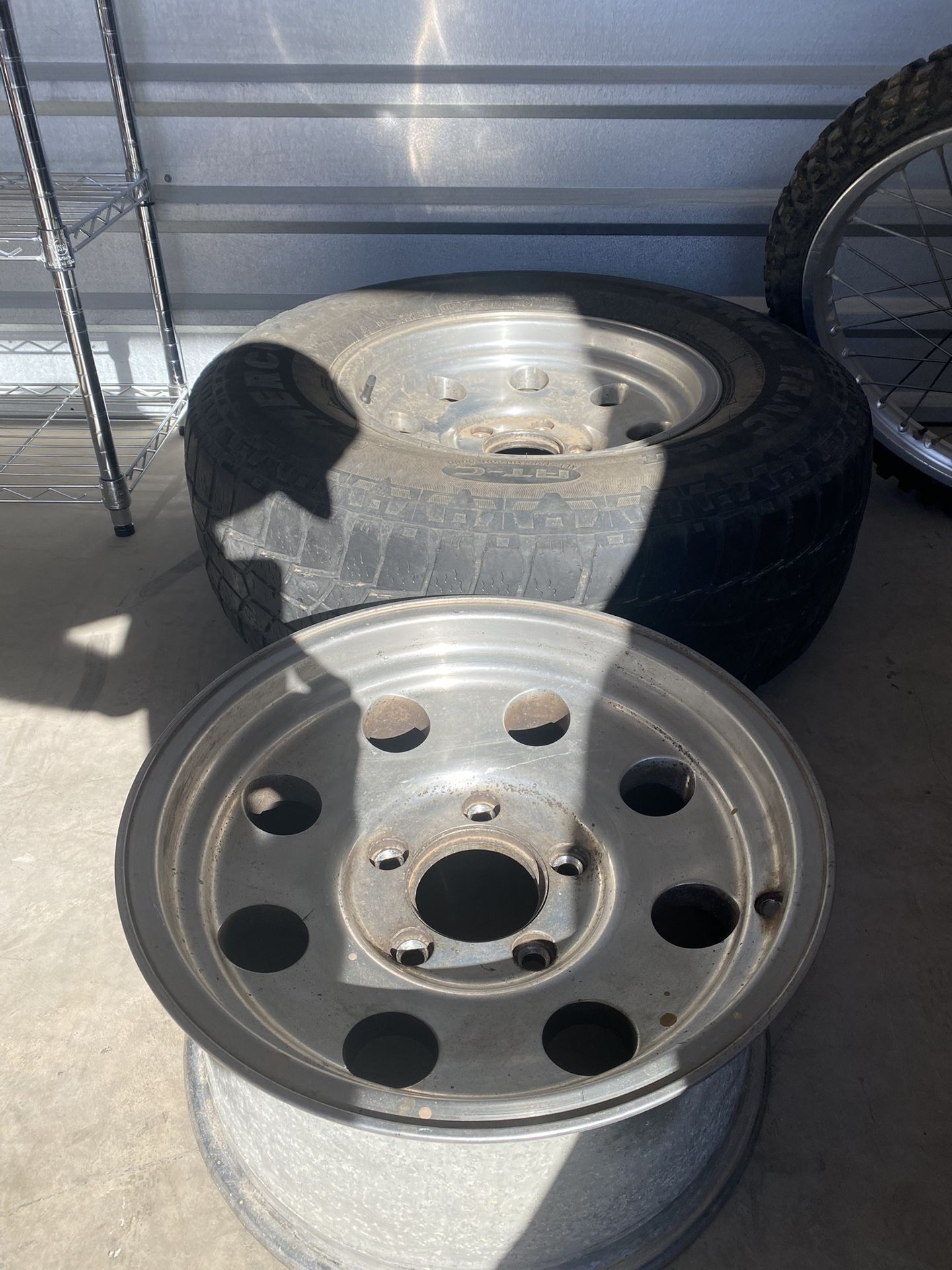 2 American racing Baja wheels 16x8+0 5x135 bolt pattern One has a tire with air soft bbs for balancing. It’s about 5 years old Pickup in chandler by the mall 90 dollars