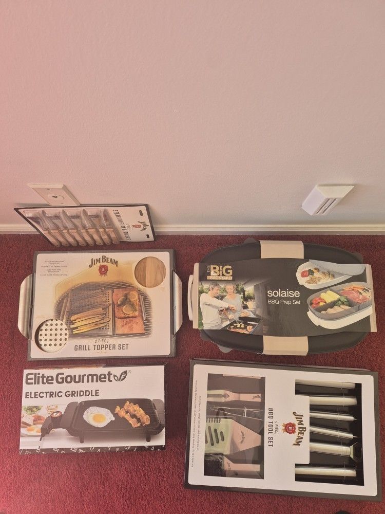 4 items barbecue + fork/knife set bonus Everything brand new, still sealed in original box. Negotiable.