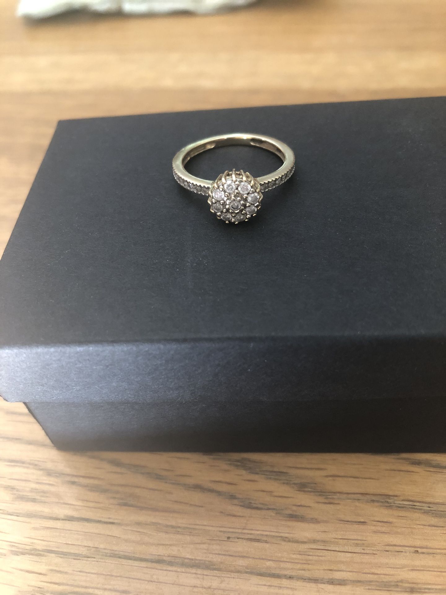 Affinity Cluster Diamond Ring. Mil grain 14k gold band and setting, set with small diamonds. Total diamond weight of 1 ct. Ring size 7. Message for more information. Local pick up only.
