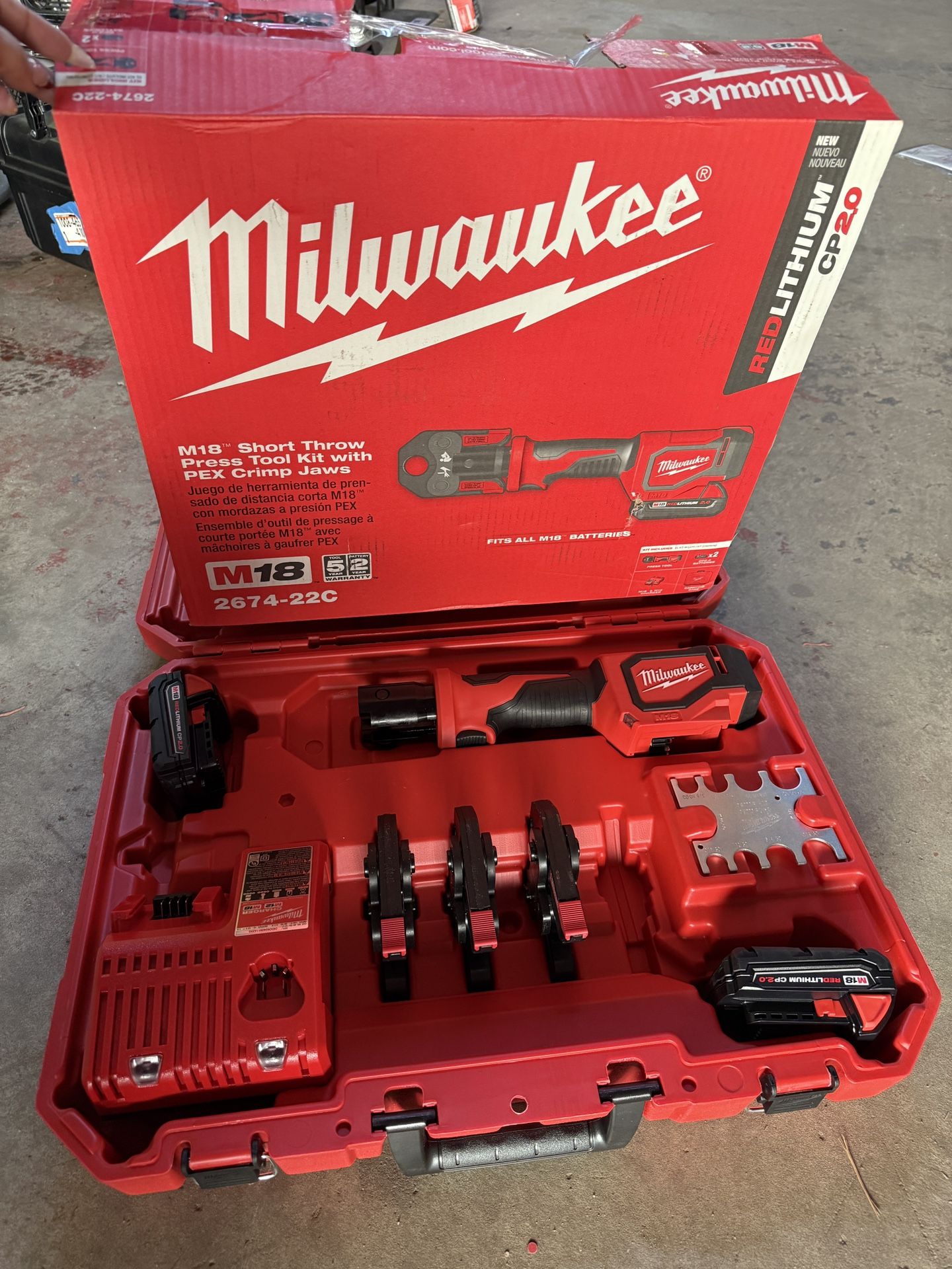 Brand new in case Milwaukee M18 Short Throw Press Tool Kit 💥 Includes 3 PEX crimp jaws + (2) 2.0 Batteries 1/2”-1” Jaws Included $660 FIRM - RETAILS $800 👇👇👇 🎯 Tampa Tool Empire - Liquidation Store 📍5150 Ulmerton Suite 14 Clearwater, FL 33760 ▶️Monday to Thursday 10-5:30 PM 🛑Friday CLOSED ▶️Saturday 10-4 PM ▶️Sunday 11-3 PM **Suite 14 👉 in the back / FL Taxes Apply**