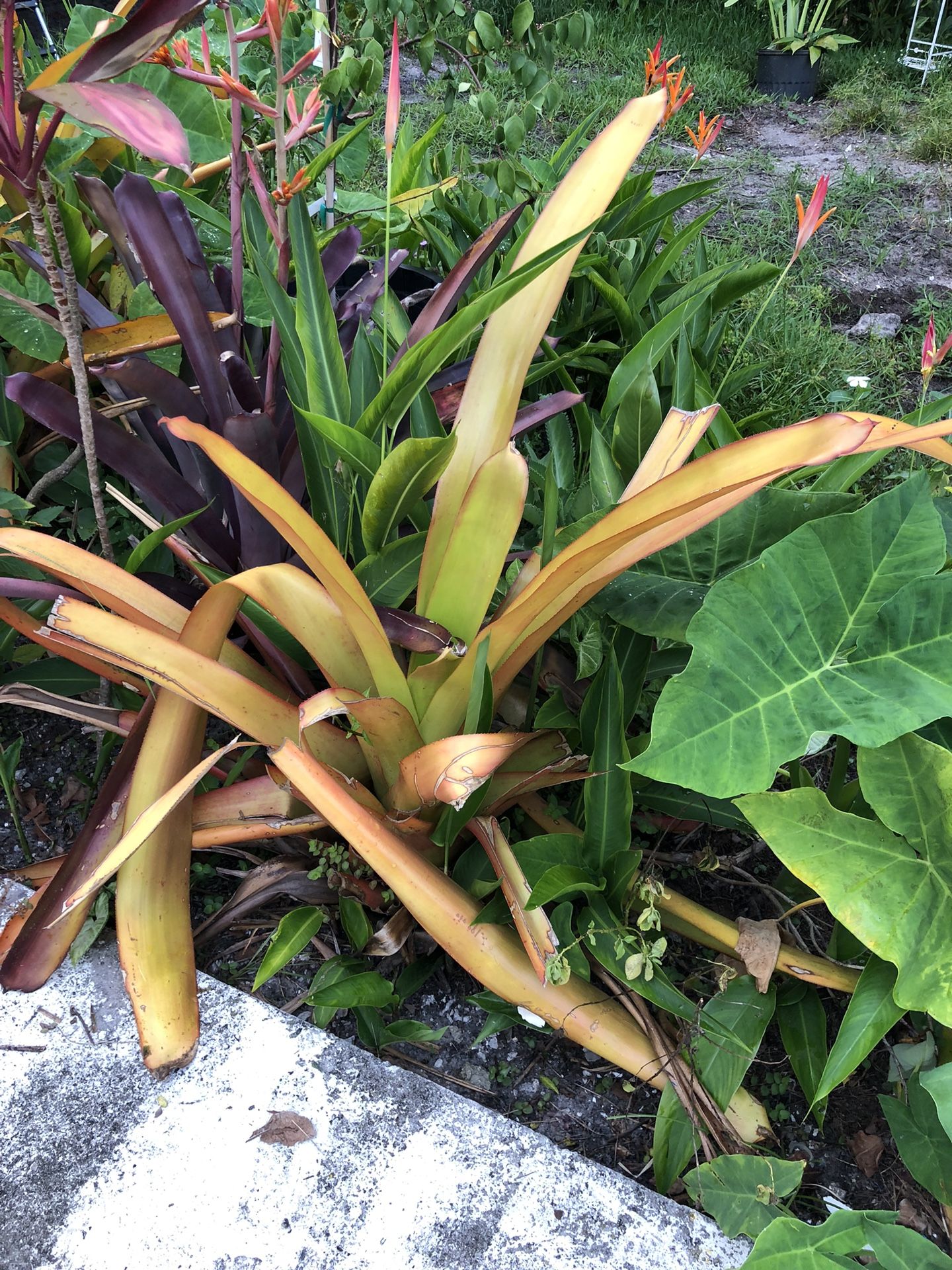 Large, orange sun, yellow bromeliads. Very healthy, excellent condition. We are changing our garden and have a few to spare.