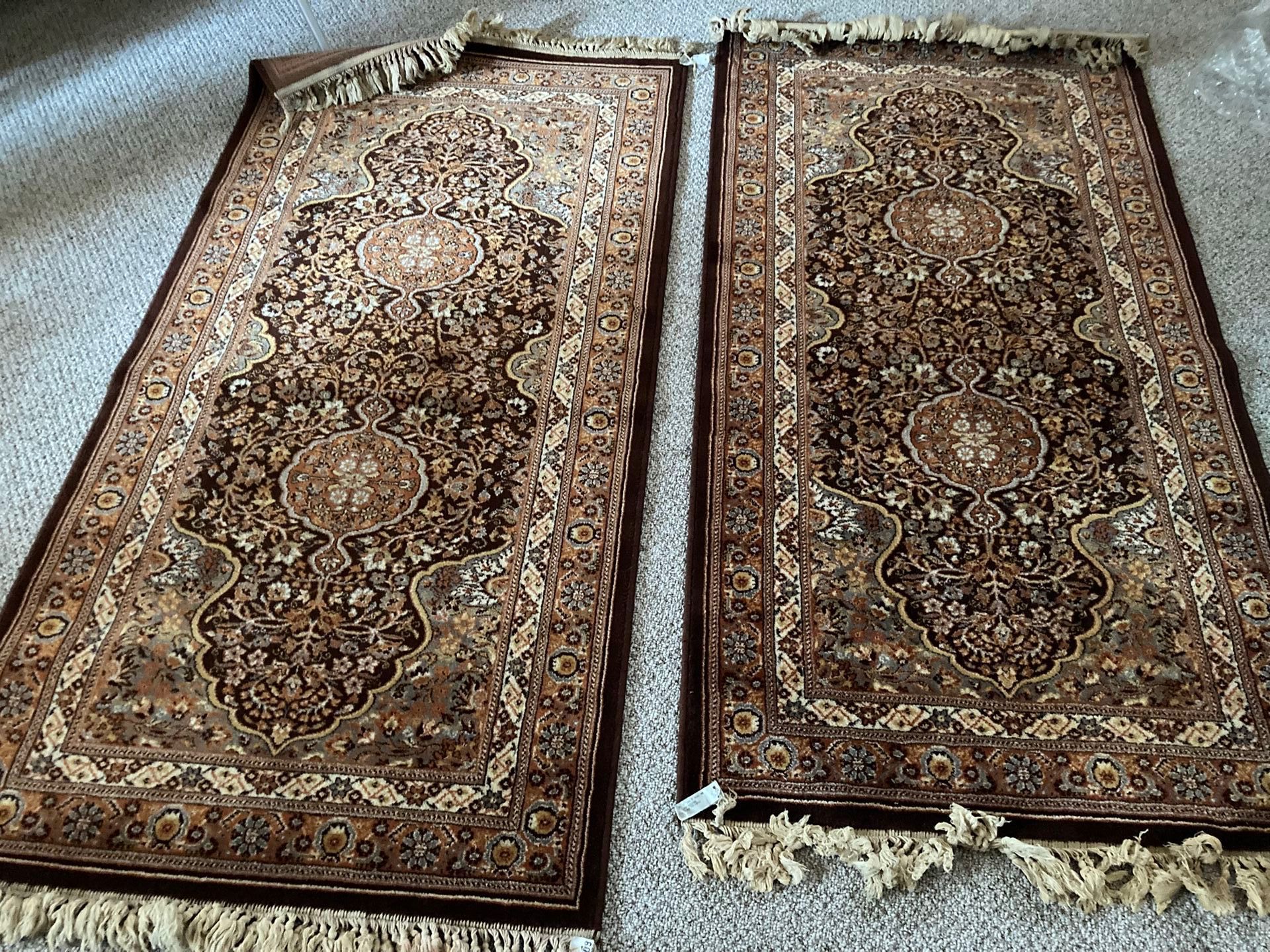 Bought over 40 years ago , never used. To many animals. Appraised at 600 to 800 dollars a piece. Will sell both for 700 dollars. They are rug runners. 70 x 35