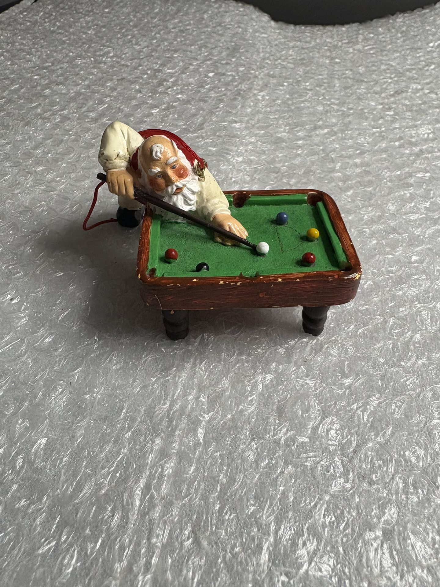 Preowned in very good condition Santa Playing Pool with Cue and Pool Table Christmas ornament A super rare find For the pool enthusiasts. Does show wear