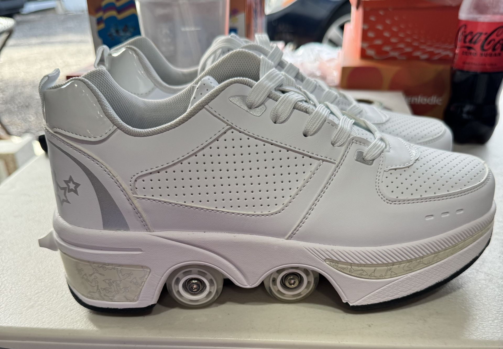 Roller Skate Shoes for Women Four Rounds Children's Roller Skates Shoes That Turn into Rollerskates Sneakers Outdoor Light Shoes with Wheels for Girls