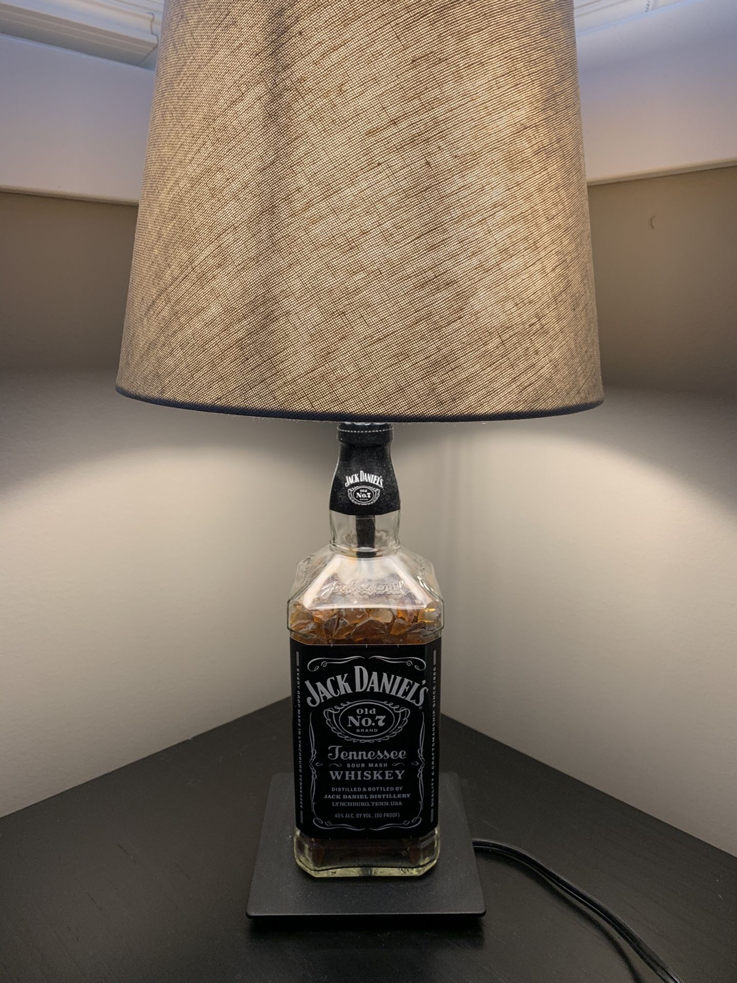 Custom made Jack Daniels lamps. I have 1L & 1.75L (Costco size) lamps. Features LED bulb, in-line switch, wide metal base, and filled with glass rock to simulate whiskey. Lamp is heavy and sturdy. Makes a great Christmas gift! I have other bottles available too. $100 for 1L, $120 for 1.75