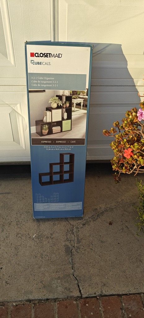 3-2-1 Elegant and sturdy design perfect for organizing rooms, offices, kids rooms, living spaces. Easy to assemble cubicles, can be used vertically or horizontally, multiple display options possible. Espresso color see picture for measurements. Bot it and never used it the box is unopened because we changed our project. It retails way above $60. Asking $30 or give me ur best price. Local pick up only. Thank you for your interest. Text if u have any questions.