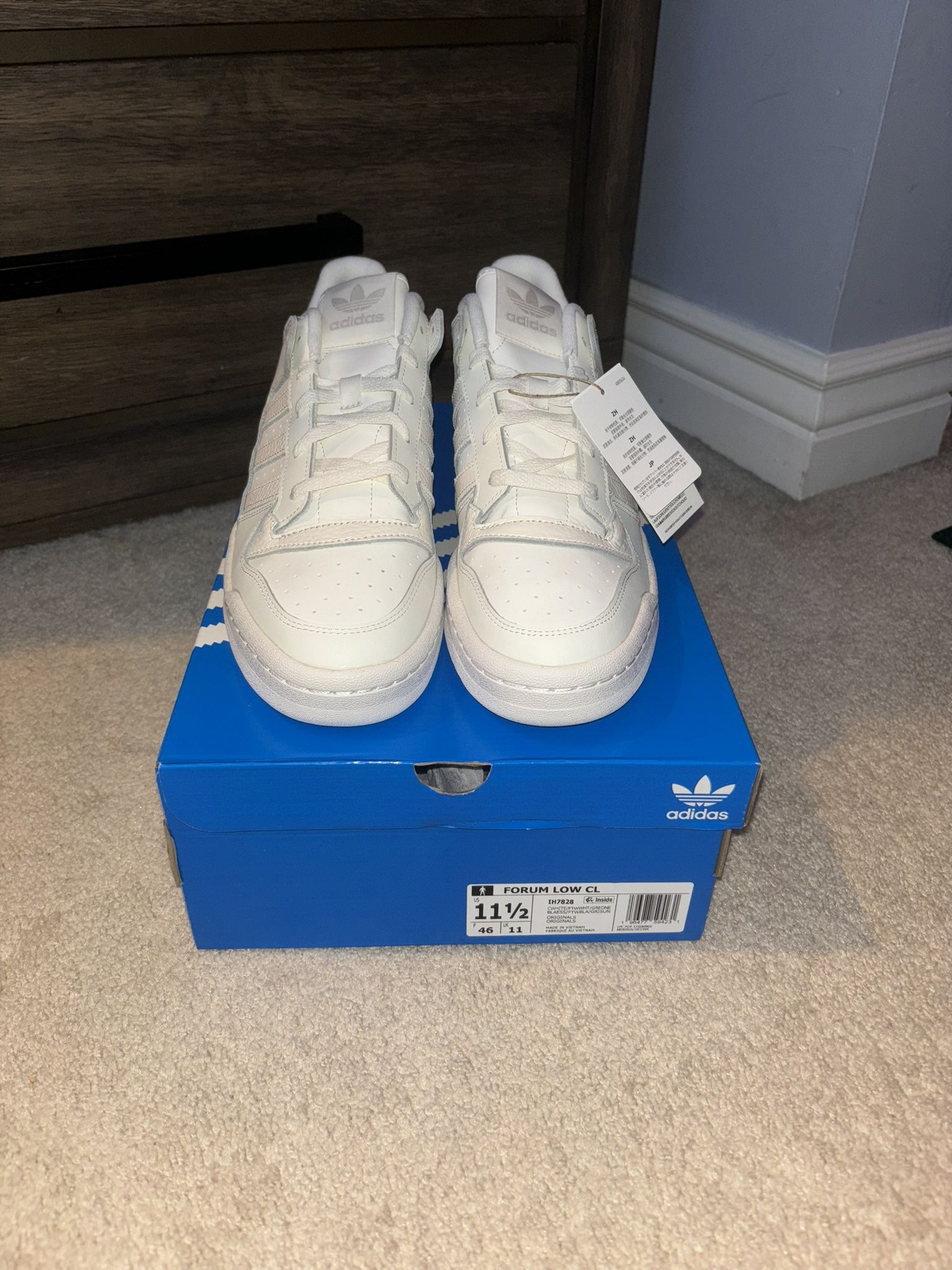 Brand new, men’s size 11.5. Color way: Core White / Cloud White / Grey One. Adidas forum low classic. Price is negotiable if you able to pick them up