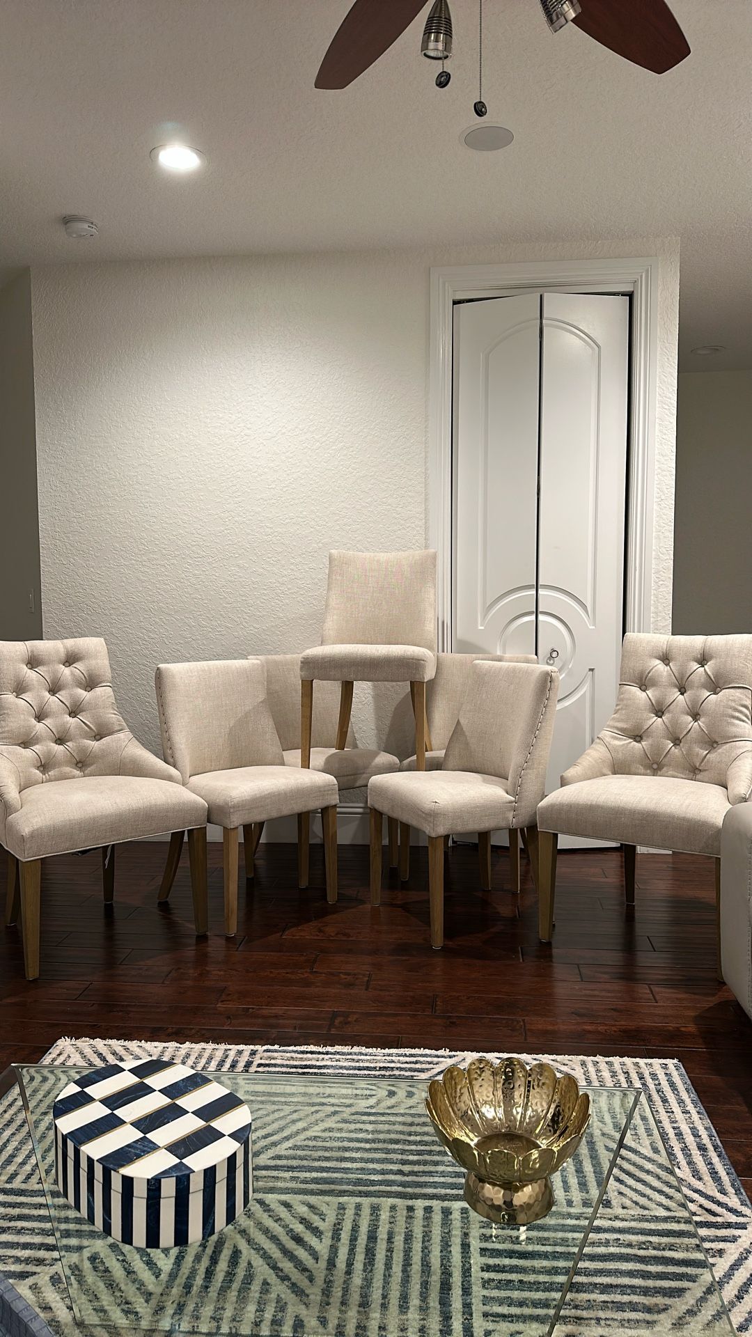 Elegant, modern , and sophisticated dining table chair set from Restoration Hardware. Perfect Condition 7 chairs The top chairs are about $350 brand new each