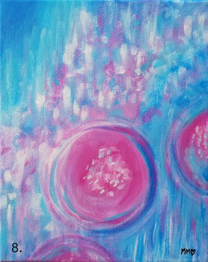 This contemporary acrylic painting shares with us the joy of beautiful peonies in the garden. With mostly blue and pink hues, this abstract artwork will add an elegant and modern, yet warm touch to your home decor. For anyone who loves the beauty of a peony, gardening, and flowers, this painting is sure to add a joyful feeling to your room. Size 8” x 10” canvas, ships unframed