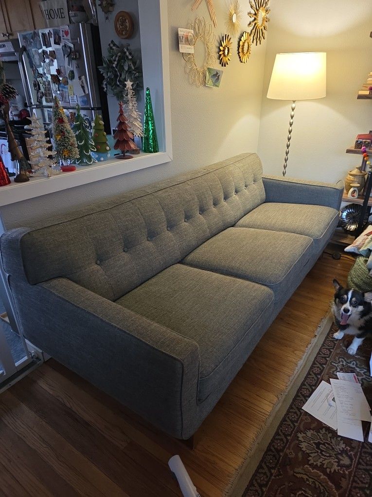 Lovely couch. In good shape. Just need a smaller one for my space. Has a water stain under the cushion otherwise in good shape. Gently loved and built to last.