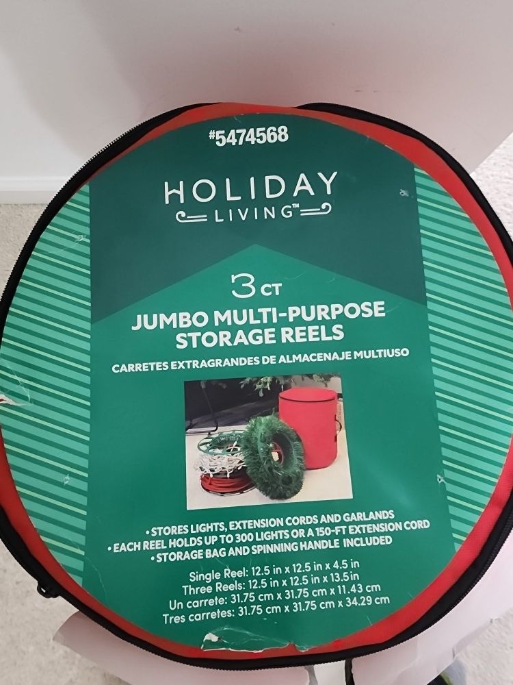 This listing is for 3 new, never used Christmas Tree light storage containers. See pictures 2. Each one has 3 circular rolls, see picture 4.