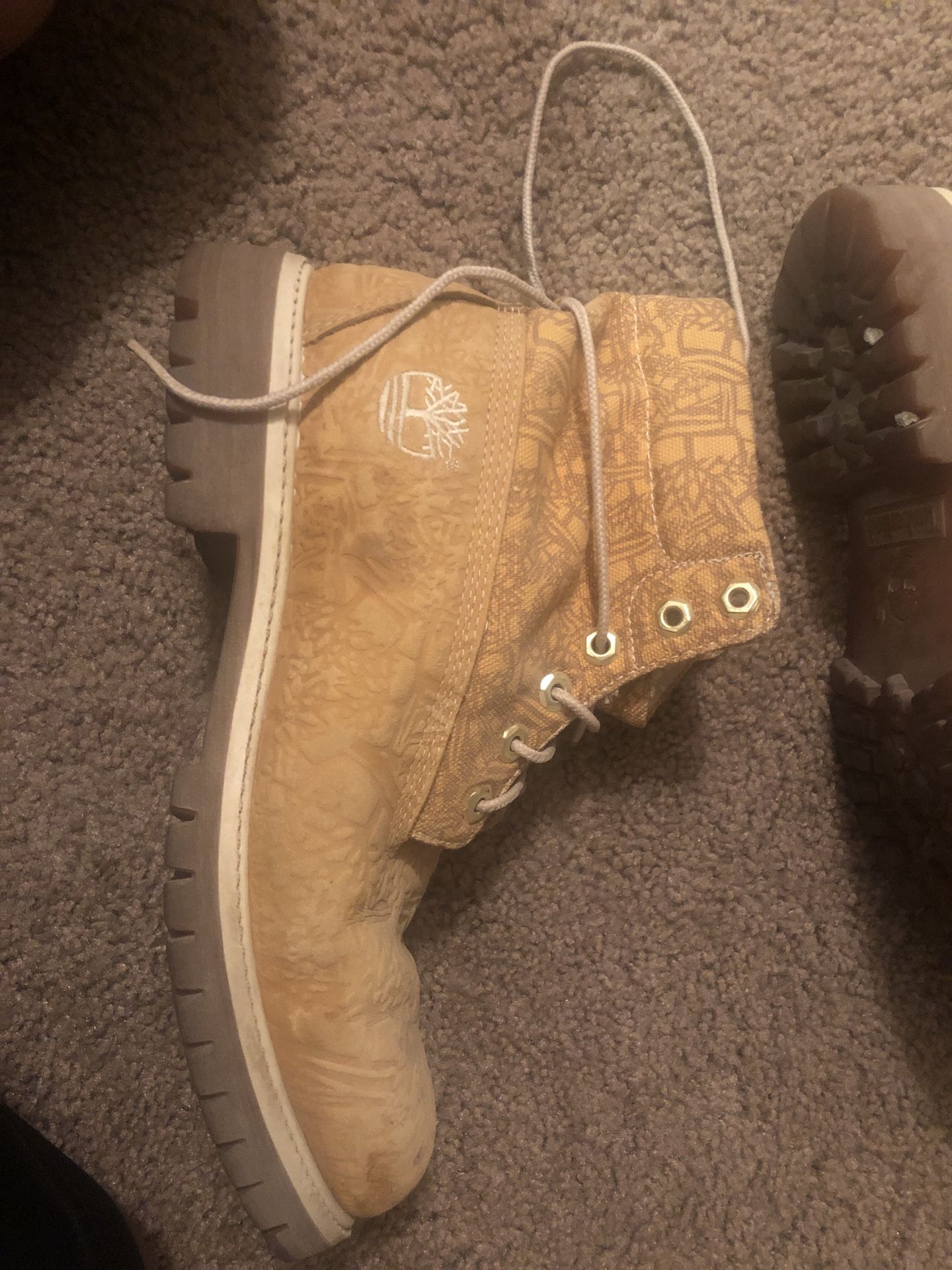 Hello for sale I have my retro timberlands. I bougth them around 15 years ago here in Vegas. Their the two tone style and have the timberland logo all around. I havent seen no other pair like this around acepting best offer. I dont have the original insoles but everything else is. Their used as shown in picture but i belive they can be restored.