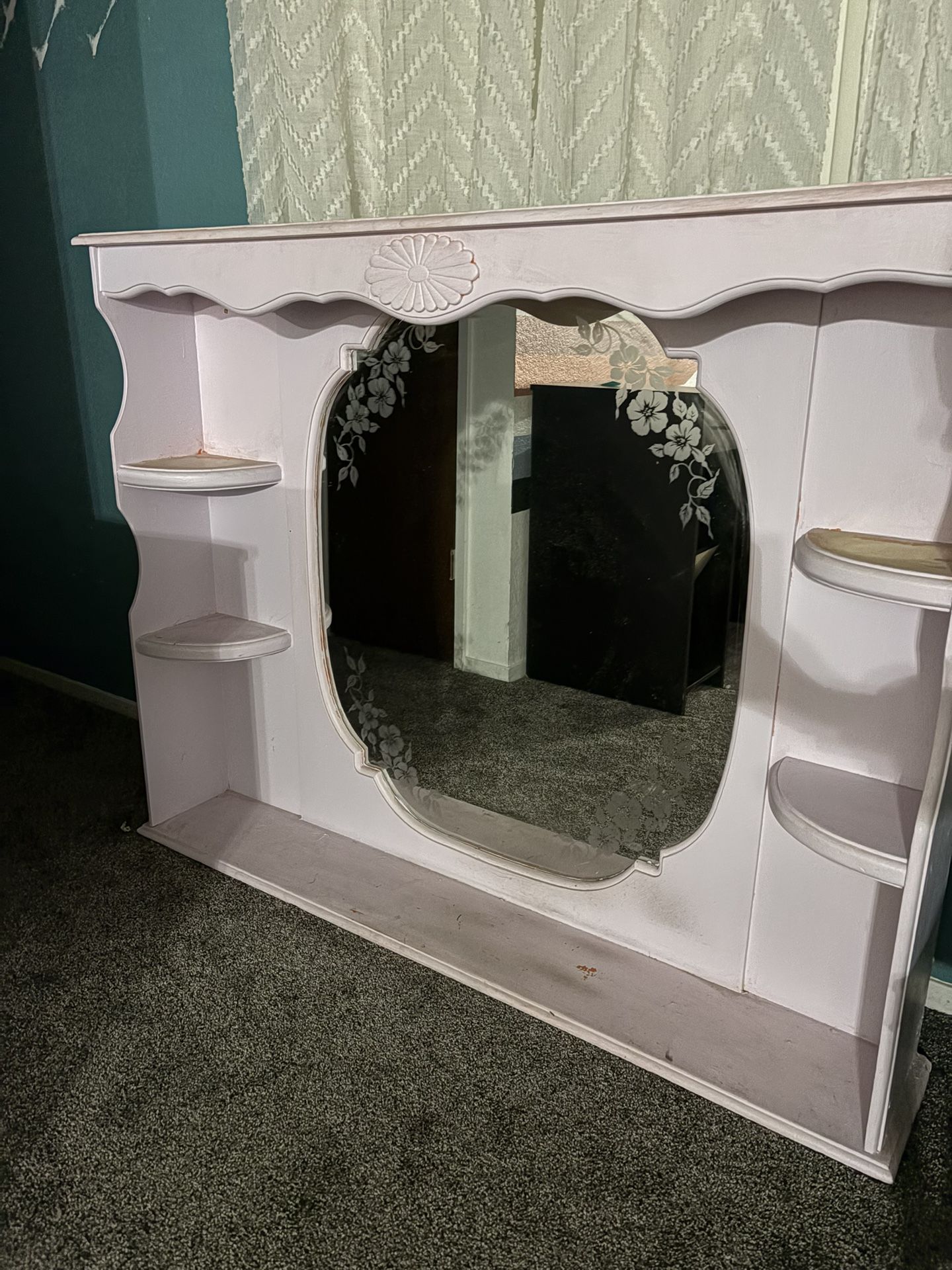 Vintage Shabby Chic Hutch / Display Cabinet with Etched Mirror