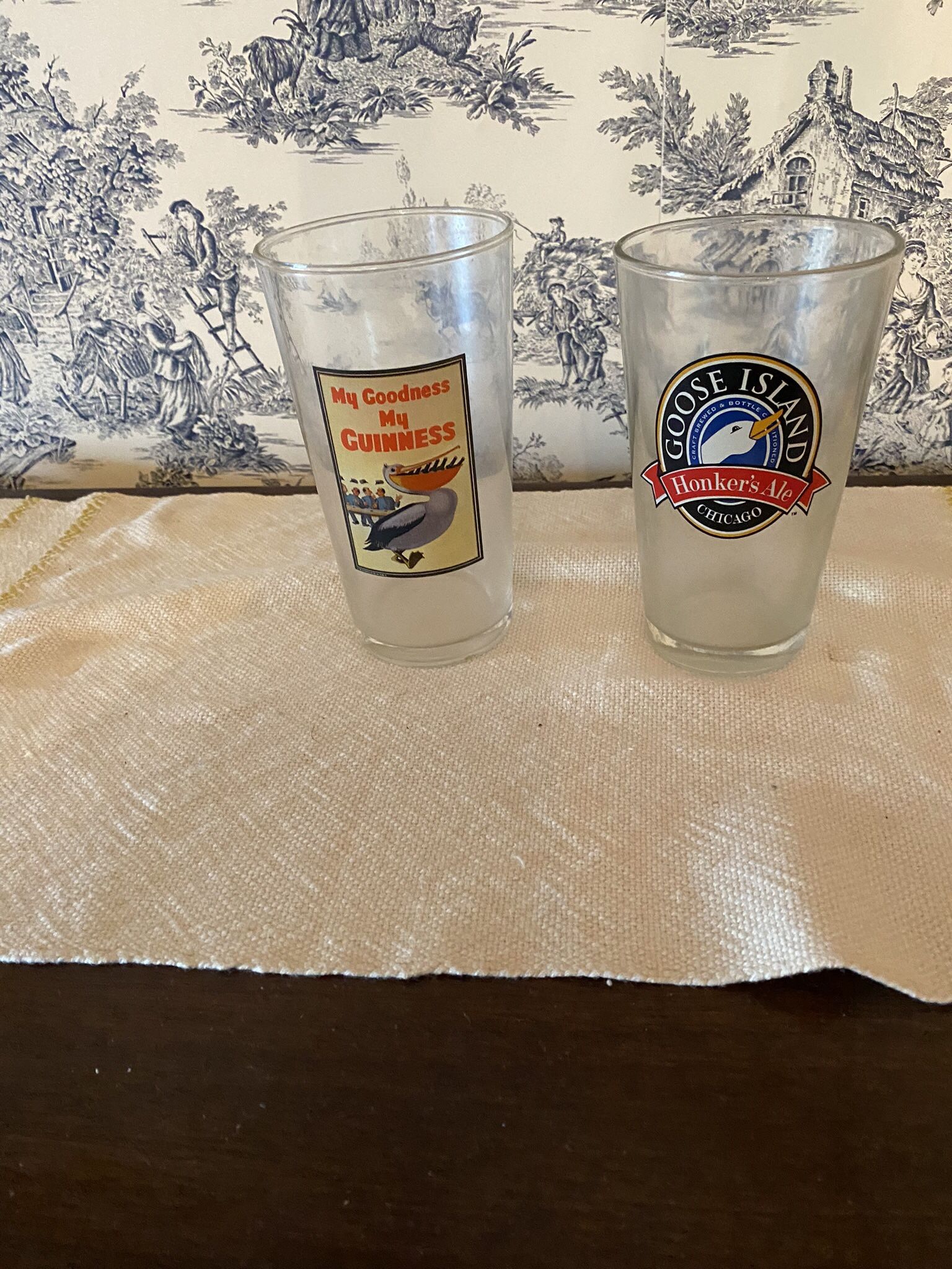 St. Patricks Day Guinness and Goose Island Pint Size Beer Glasses. Bought Overseas. 15 dollars each