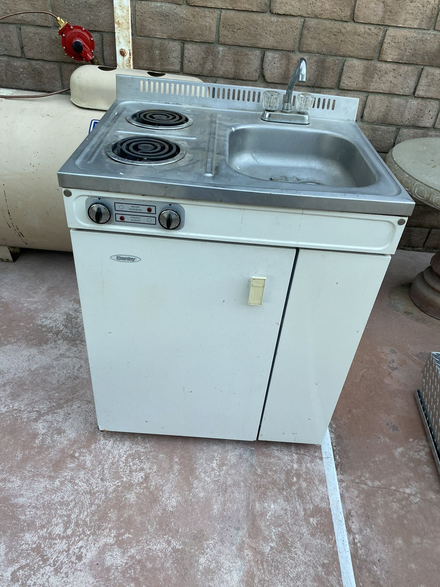 Denby (Danby) compact kitchen unit, which is an all-in-one appliance designed for small spaces like dorm rooms, offices, or cottages.