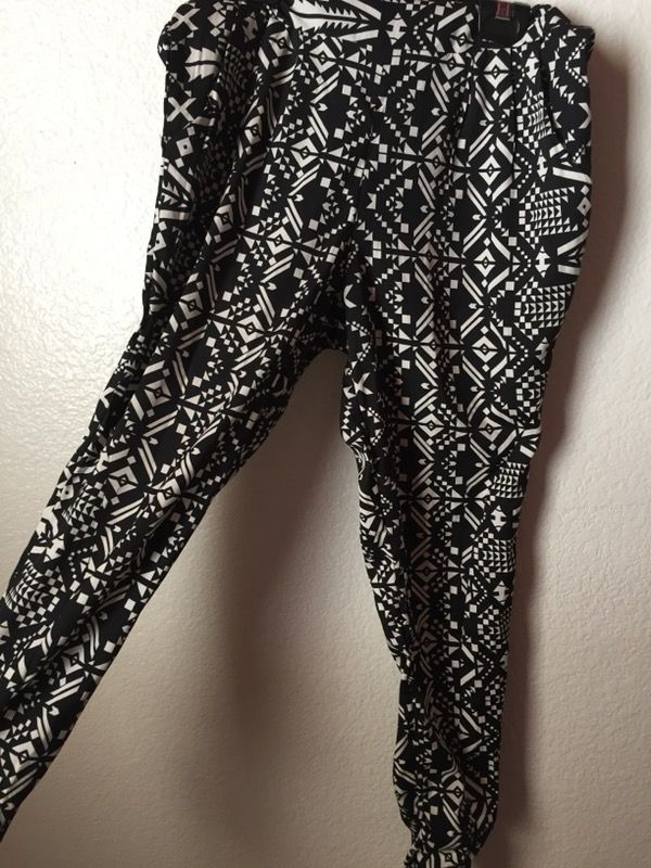 TRIBAL DRESS PANTS JOGGERS JUNIORS BLACK WHITE DIZZIRE POCKETS SIZE MEDIUM M