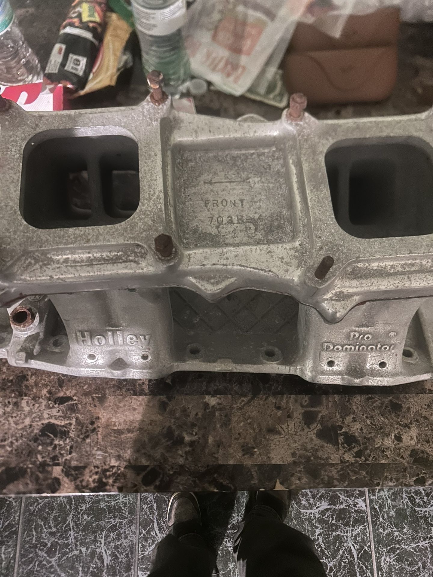 Holley Pro Dominator tunnel ram for Chevy Small Block with HEI distributor featuring vacuum advance. Pre-drilled for nitrous don’t gotta run nos tho. studs have surface rust can be removed Clean, ready to install, no modifications needed.