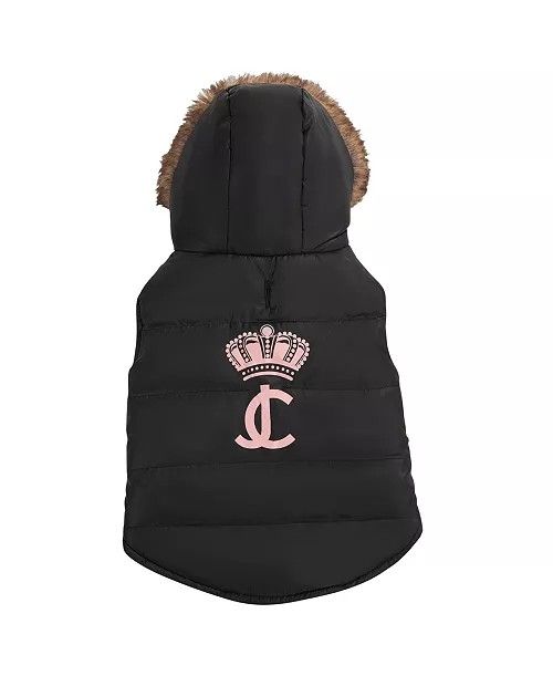 Elevate your pet's style and warmth with the Juicy Couture crown puffer hooded pet jacket. Designed by the LA lifestyle brand known for casual glamour, this pet jacket embodies their unique spirit. Keep your furry friend cozy during cold weather with the faux fur hood while ensuring easy on-and-off convenience. Whether you're looking for dog cold-weather gear or fashionable pet attire, this hooded pet outfit has got you covered. Size XS/S fits 11"-19" length x 15"-20" chest and size M/L fits 17"-26" length x 20"-30" chest. Embrace winter in style, and let your pet enjoy a touch of couture in their everyday adventures. Product Features Product dimension - 8" L x 8" W x 8" H Product weight - 0.21 lbs Cozy comfort for your pet - treat your furry friend to the luxurious warmth of the Juicy couture crown puffer hooded pet jacket, ensuring they stay snug and comfortable in colder weather Stylish faux fur hood - this pet winter coat features a chic faux fur hood that not only keeps your pet warm but also adds a touch of fashion to their outdoor adventures Easy on and off - designed for convenience, our puppy hooded jacket is a breeze to put on and take off, making dressing your pet a hassle-free experience Versatile small dog hoodie - perfect for small dogs and puppies, this warm pet clothing provides the ideal solution for cold-weather outings and adds a touch of coziness to their attire Quality pet outerwear - elevate your pet's winter wardrobe with this cold weather pet apparel from Juicy couture, a trusted name in casual luxury, ensuring both warmth and style