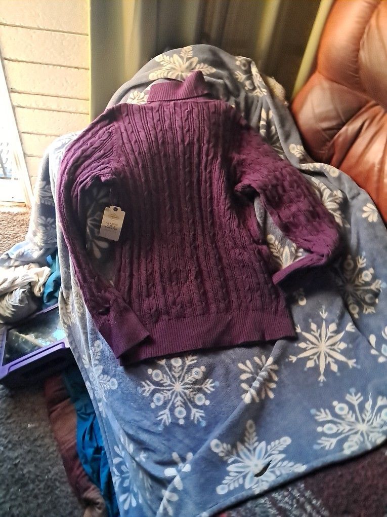 New Saint John's Bay Purple Cable knit turtle neck sweater X-Large. Still has tags. Cost $37.00