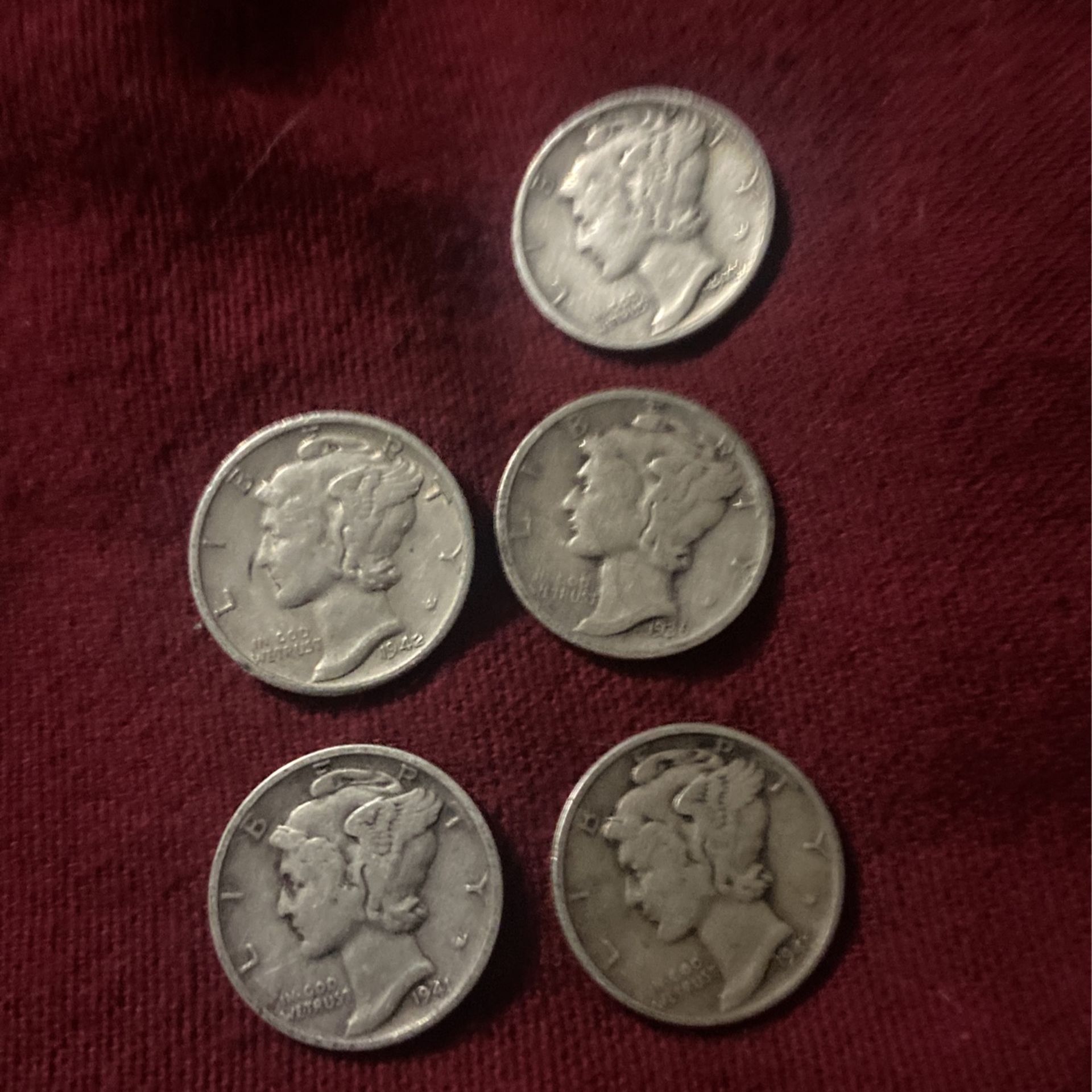 Lot Of 5 Liberty (Mercury)Dimes 90%silver